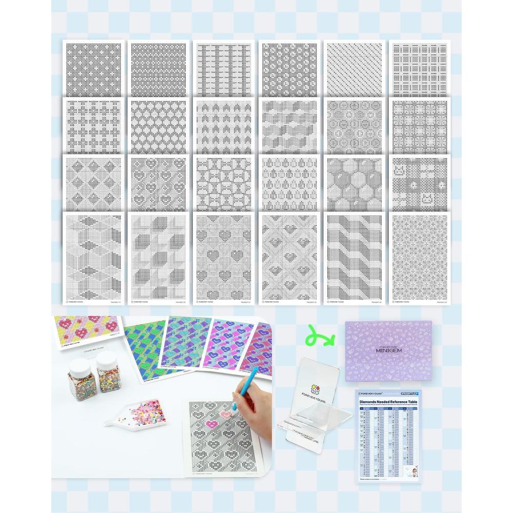 What You Get: This set includes 24 Foreveryoung freestyle diamond painting cards, a sleek acrylic display stand, and a reference card with color suggestions and instructions. These small diamond painting cards are a creative way to repurpose leftover diamond art diamonds. A perfect addition to your diamond painting supplies, these cards pair effortlessly with your existing diamond art tools and accessories to make your crafting more versatile and fun. (Diamonds are not included.)
