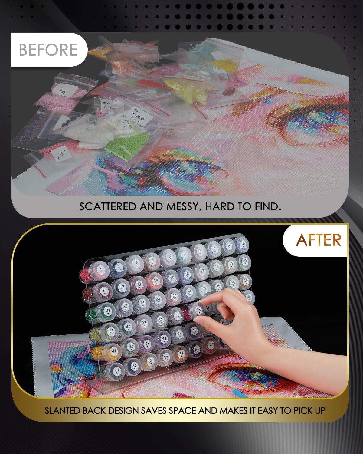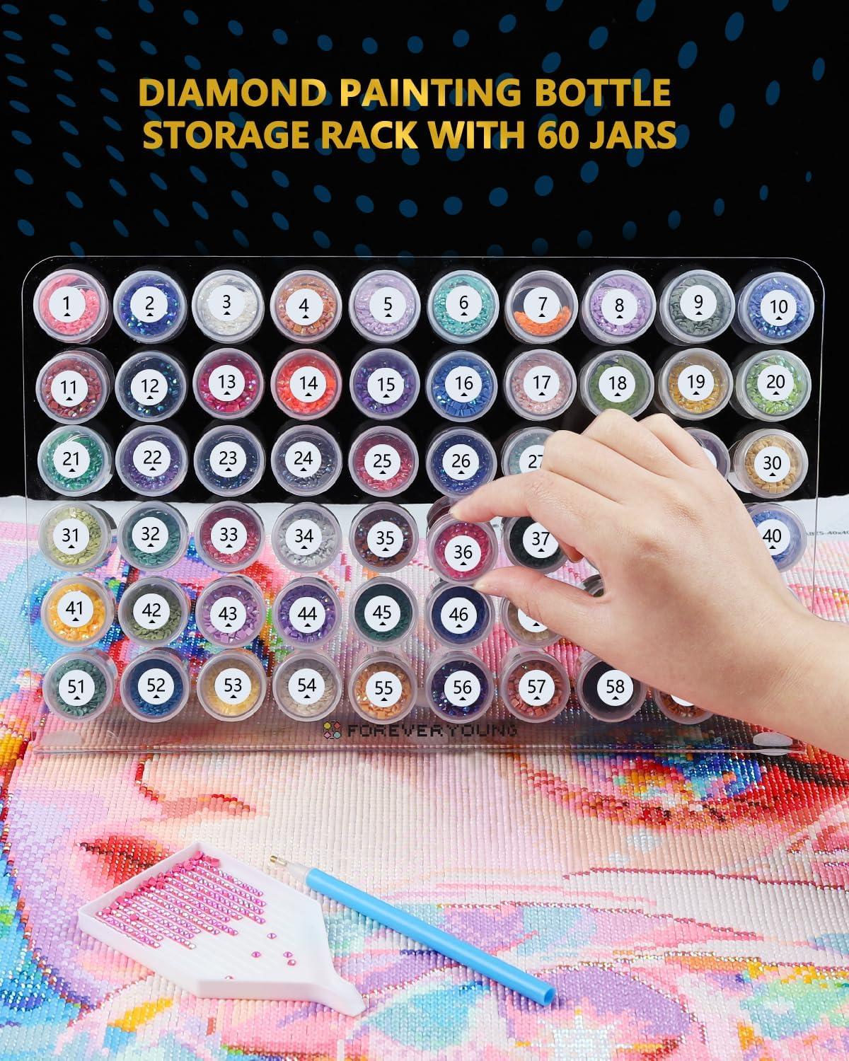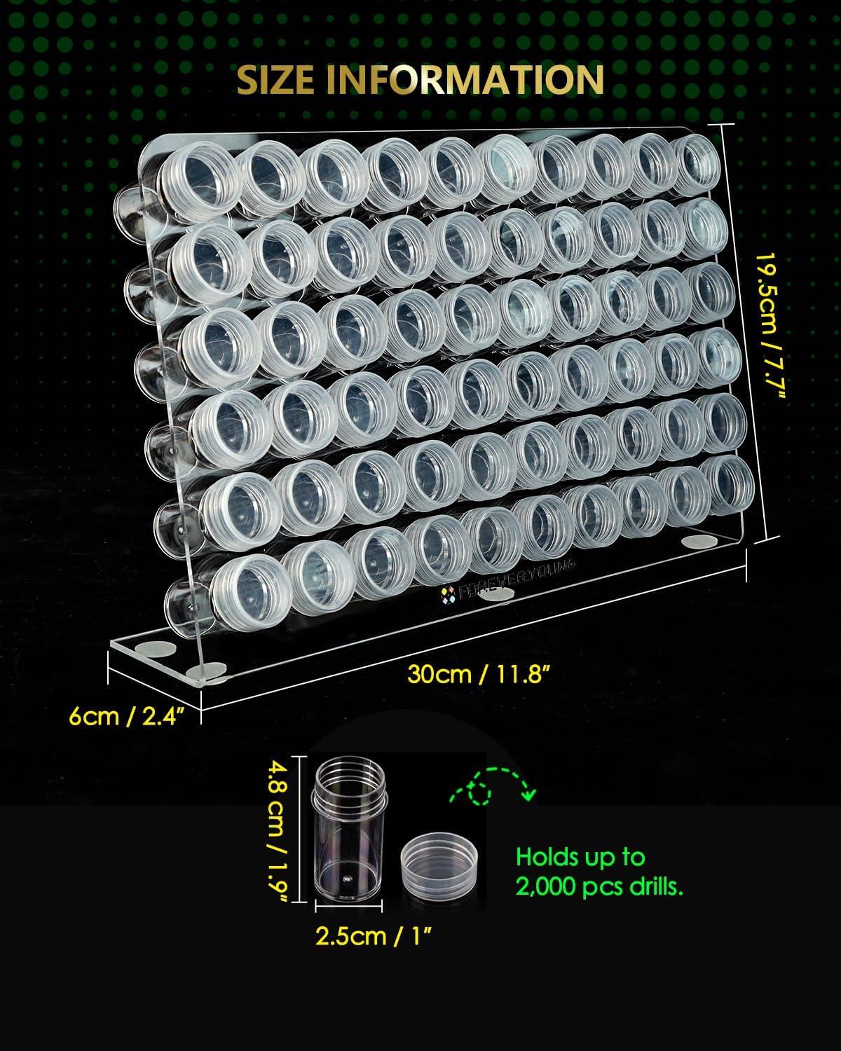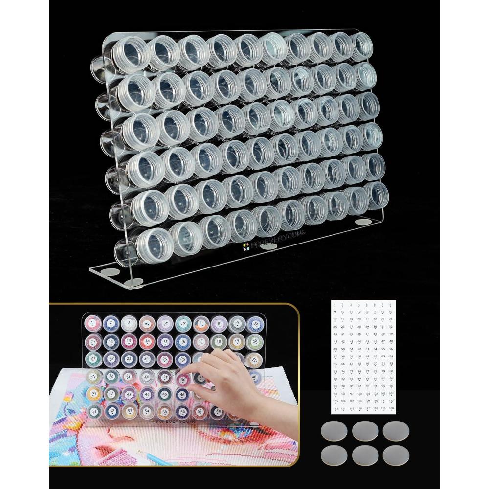 Foreveryoung Diamond Painting Bottle Storage Rack with 60 Slots, Diamond Art Storage Containers for Beads, Compatible with Most Diamond Painting Accessories and Tools, Tidy Workspace (No Jars)(Rack and 60 Jars)